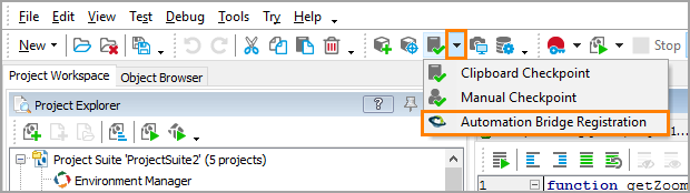 3. Click the Automation Bridge Registration icon on the toolbar.