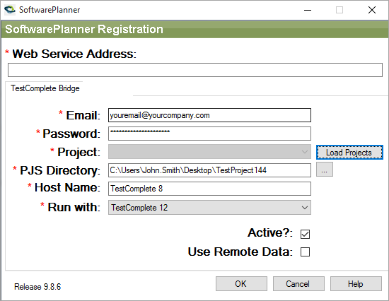 5. On the TestComplete Bridge tab, enter the email you want to use to log in to QAComplete or ALMComplete and your password, then click Load Projects.