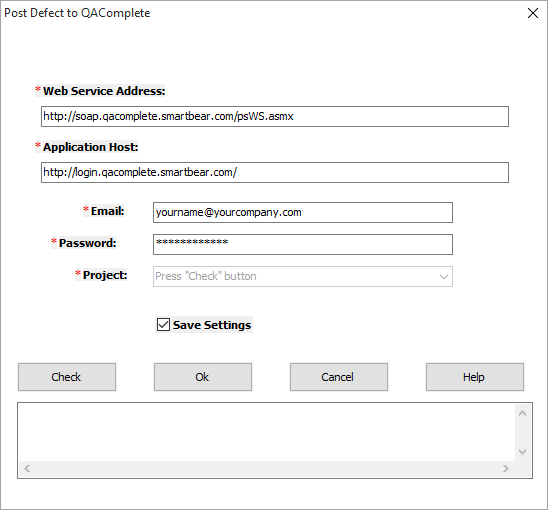 The Post Defect to QAComplete dialog in TestComplete