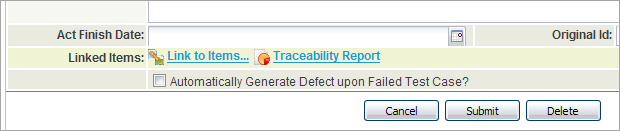 You can also link a test case to a defect manually. To do that, open the Edit form for a test case, then click New Defect at the top of the screen. Also, you can automatically create a test case from an existing defect on the Edit Defect form by clicking New Test Case.