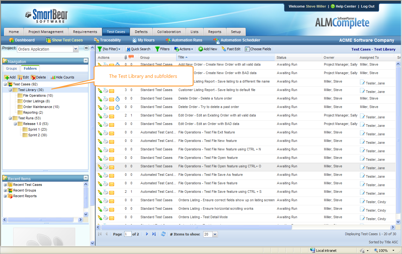You can re-use test cases from release to release by organizing them into release folders by using Fast Edit to copy them to new folders for each release. In this scenario, you may need to store master versions of your test cases in the Test Library folder, separated by a functional area.