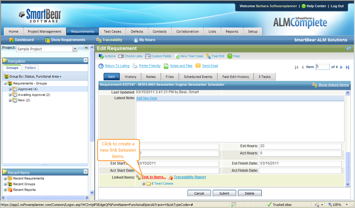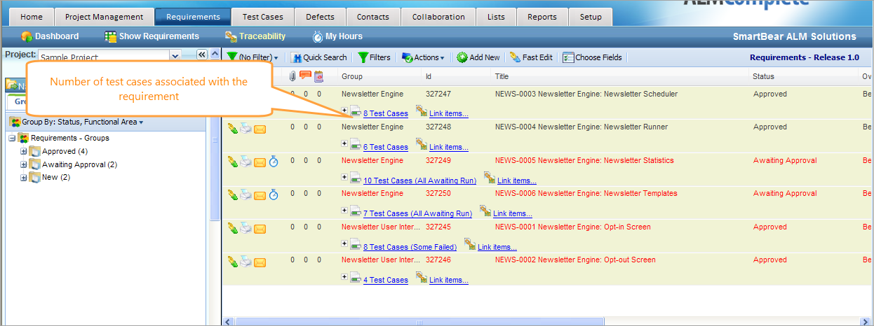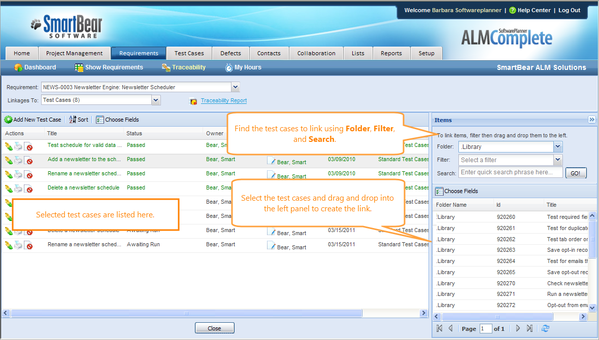 Software Planner offers several ways to ensure that traceability is configured for your test cases: