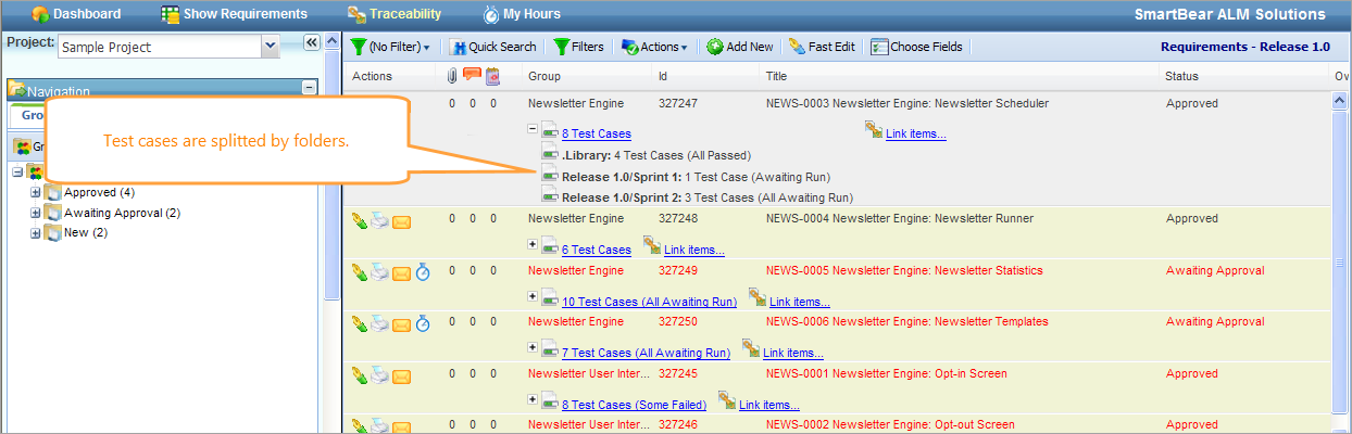 Software Planner allows you to organize your test cases in any way you wish. For example, you may consider organizing test cases by a software release, agile sprint, and so on. You can also organize them by a product line, component, or functional area.