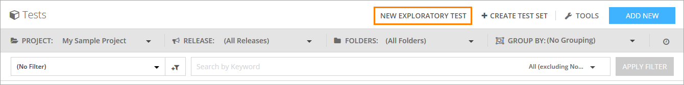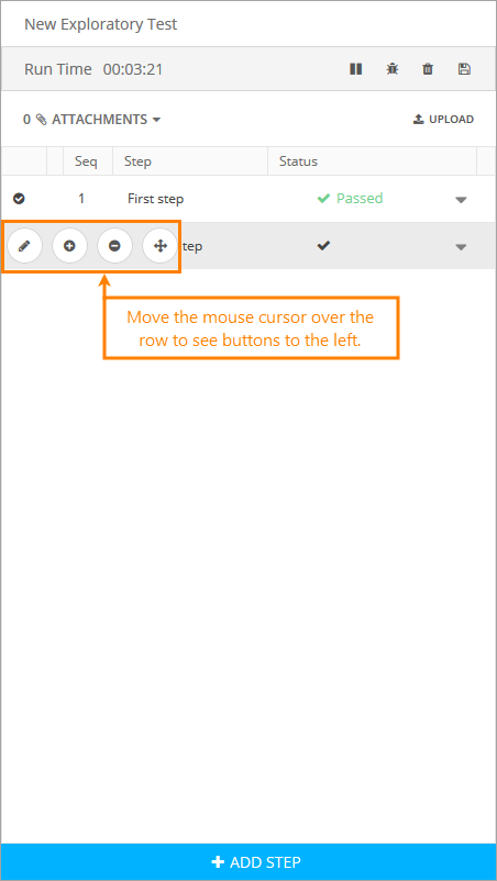 • Use the toolbar of the Test Runner window to perform various actions with your exploratory test.
