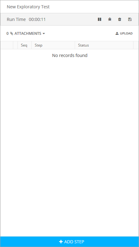 • If you don't want to take into account the time spent on describing the test steps, click on the toolbar to pause the timer.
