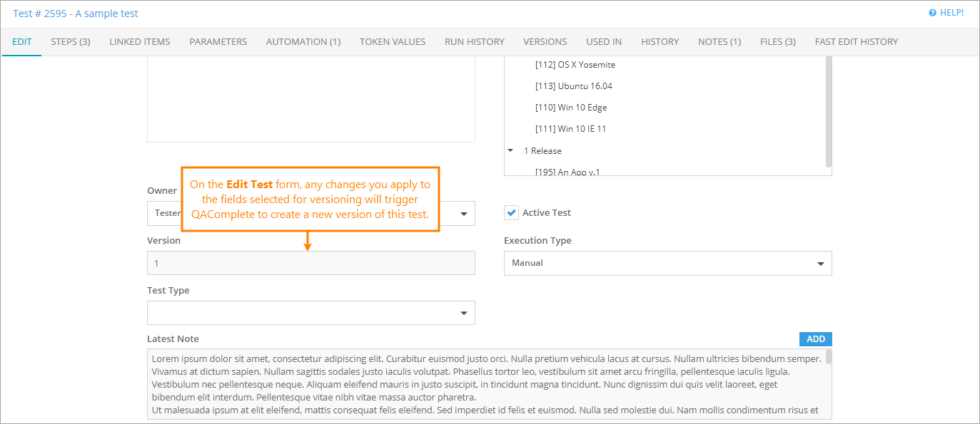Any changes to steps and expected results will trigger a new version of your test. You can also flag other fields to trigger a new version.