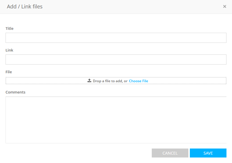 To attach files to a test schedule, switch to the Files tab on the Edit Test Schedule form and click Add/Link Files to open the Add/Link Files form.