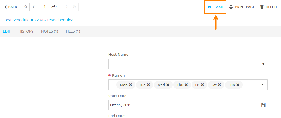Edit Test Schedule: The Send Email button