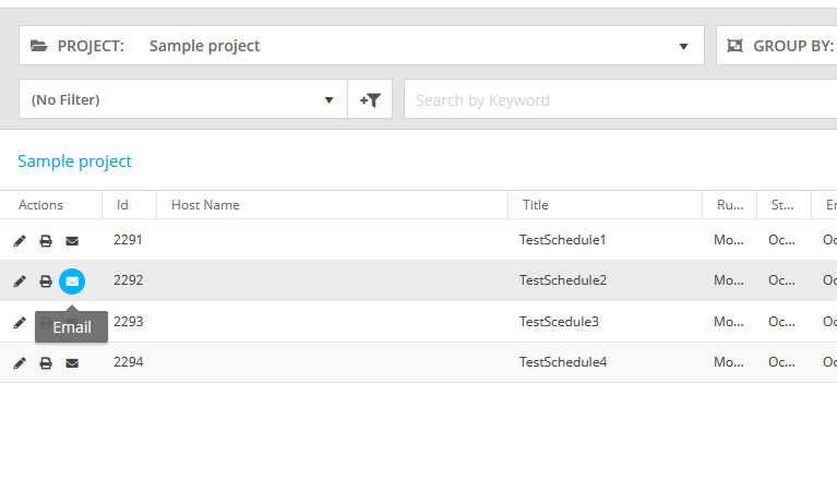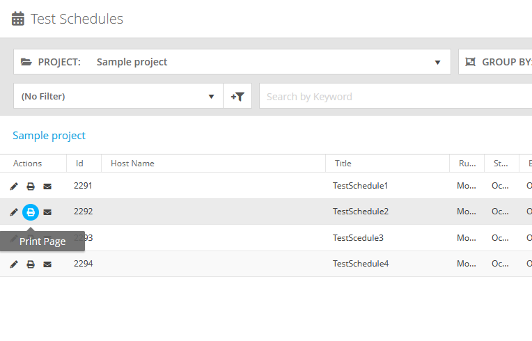 • On the Test Schedules screen, click in the Actions column next to the needed test schedule.