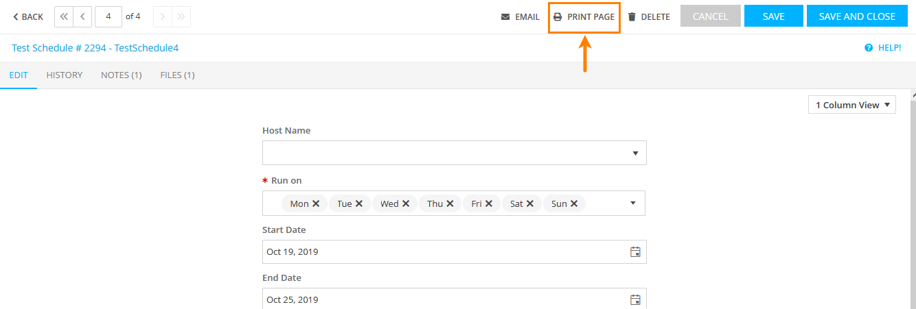 • Click Print Page at the top of the Edit Test Schedule form.