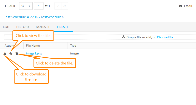Edit Test Schedule: Download, view or delete the file