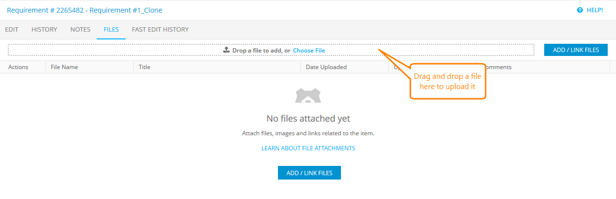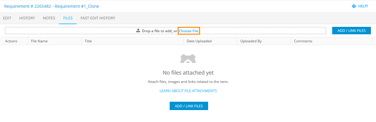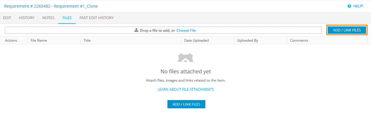 Files tab: The Add / Link Files button