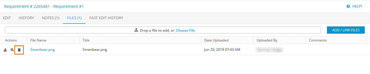 • Replace existing files, save original as a prior version – All the existing attachments will be stored in QAComplete, the Revision %number% replaced comment will appear for them on the Files tab
