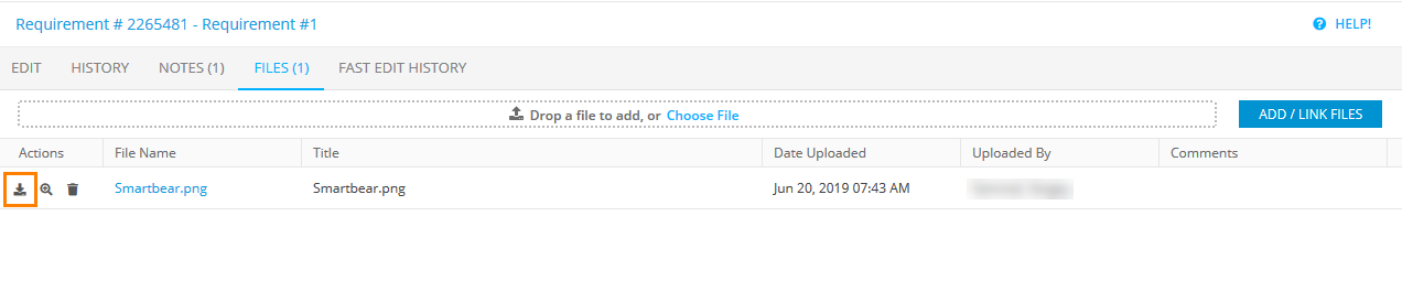 Files tab: The attachment download button
