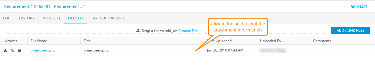 Files tab: The attachment information editor