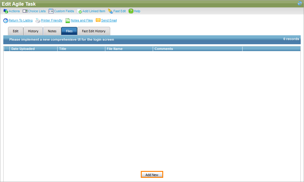 Files tab: The Add New button