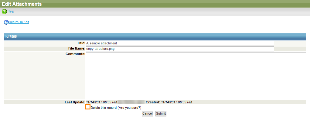 1. Click Edit this record to open the Edit Attachments form.