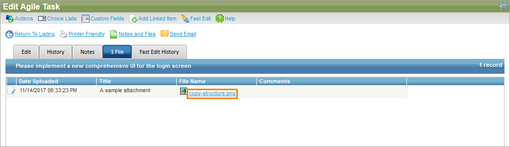 2. On the Edit Attachments form, make the changes you need in the Title and Comments edit boxes.