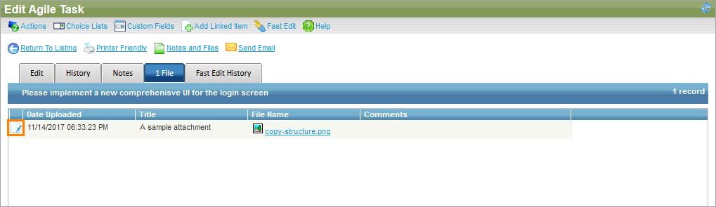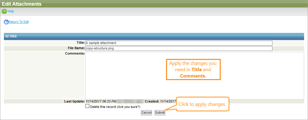 1. Click Edit this record next to the attachment you want to edit.
