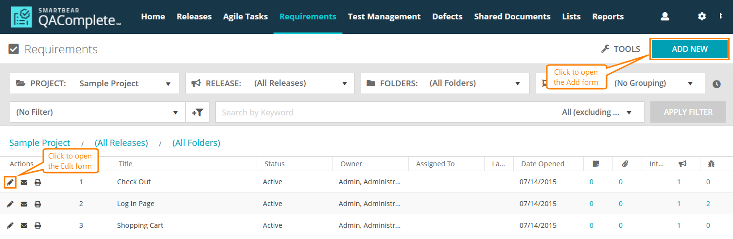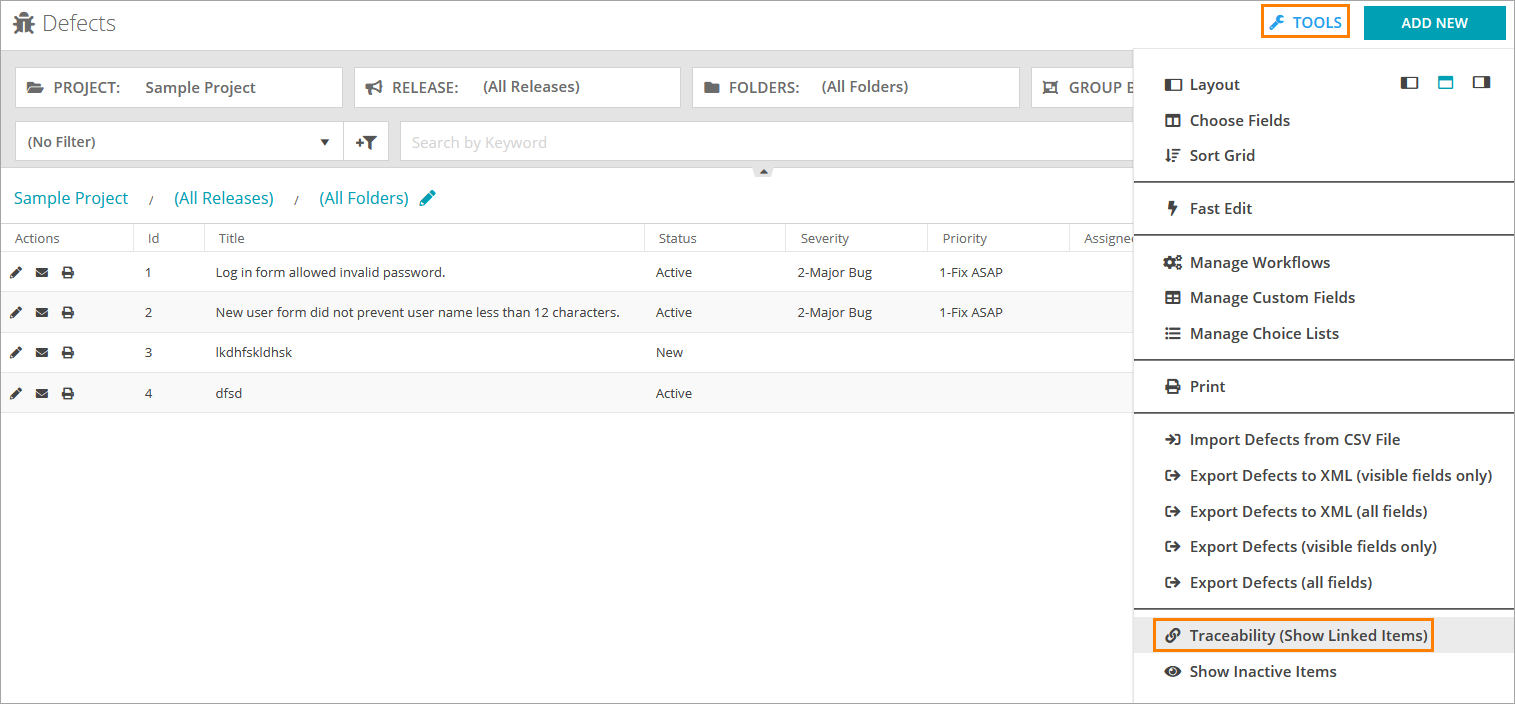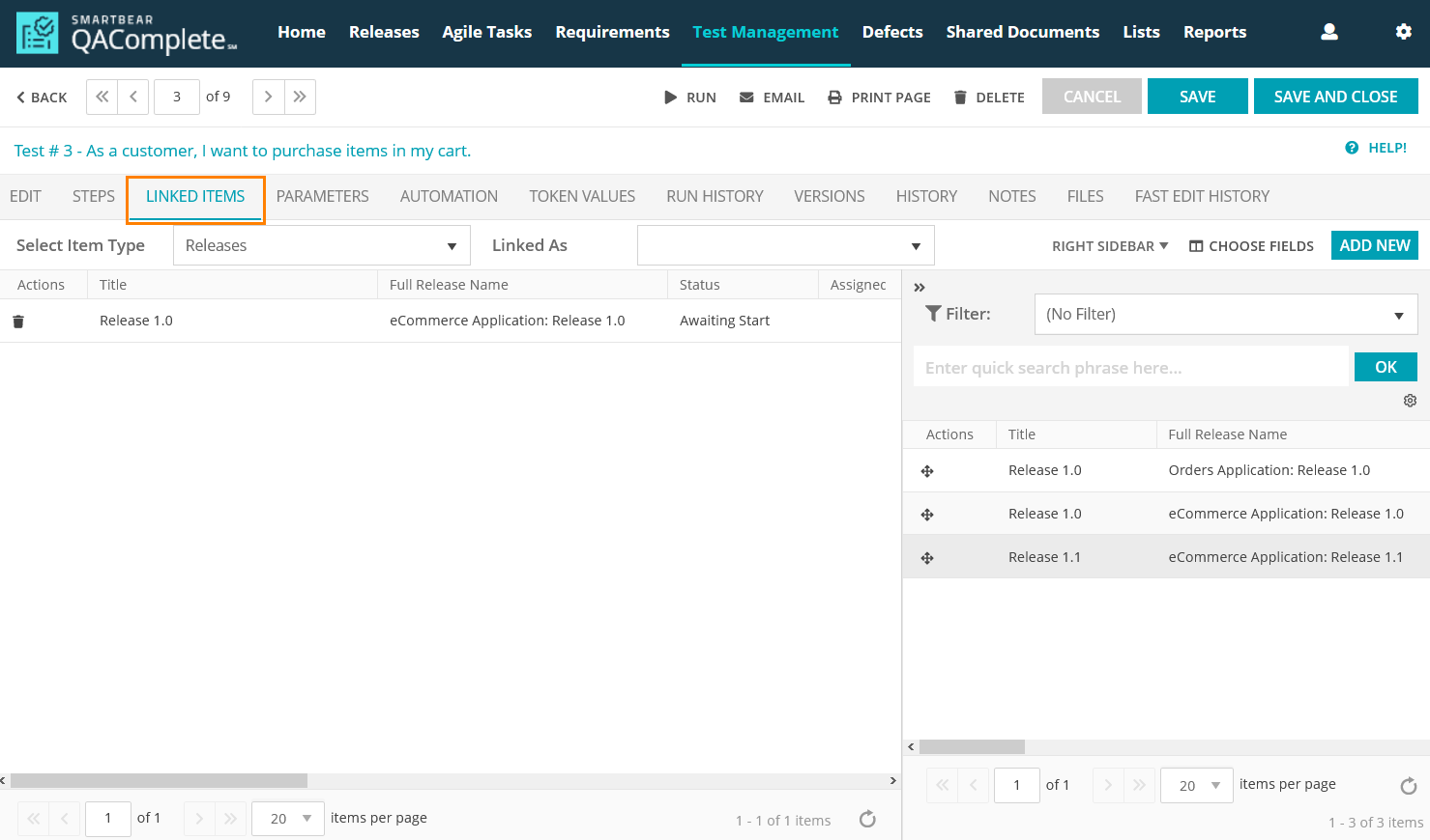In QAComplete, you can link defects to requirements, agile tasks to releases and so on. This makes it easier to monitor your changes and integrate various types of items into your workflow.