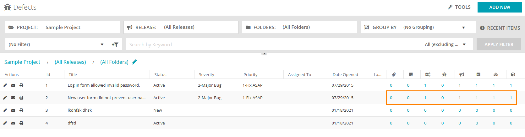 | The number of linked defects. | |
