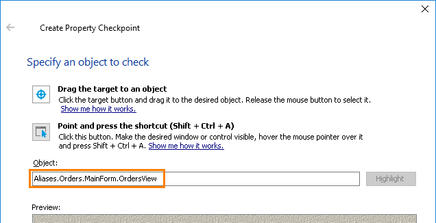 Use controls shown in the wizard. For instance, here are controls displayed for the Property Checkpoint wizard: