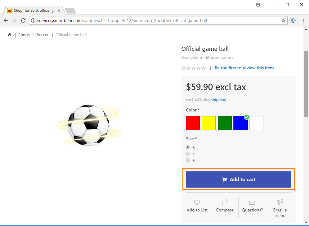 Insert a comparison command into our test. It will verify that the Shopping Cart contains an item with the selected features - color: blue, and size: 3.