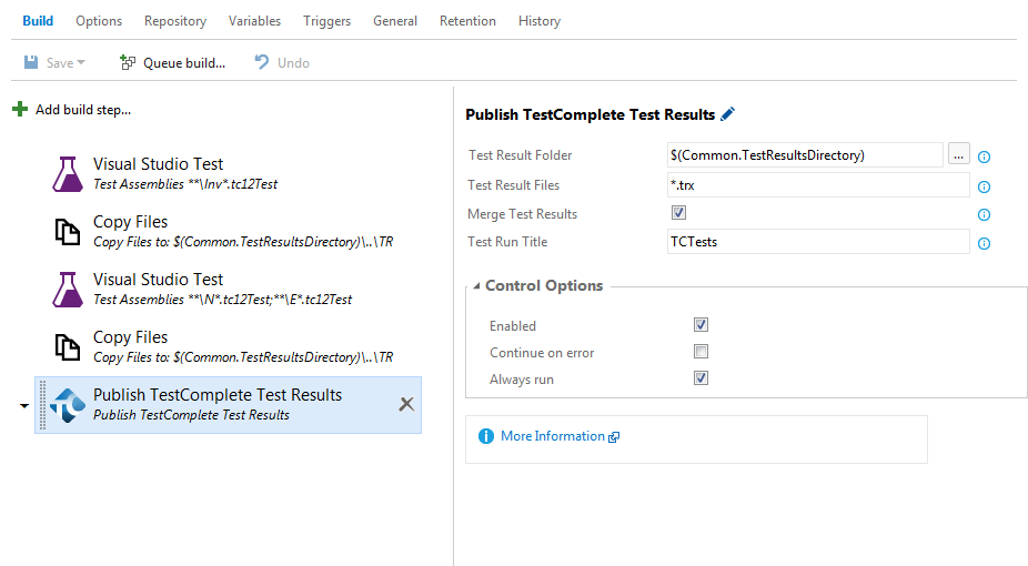 Configuring Build Definition to Publish TestComplete Test Results Step