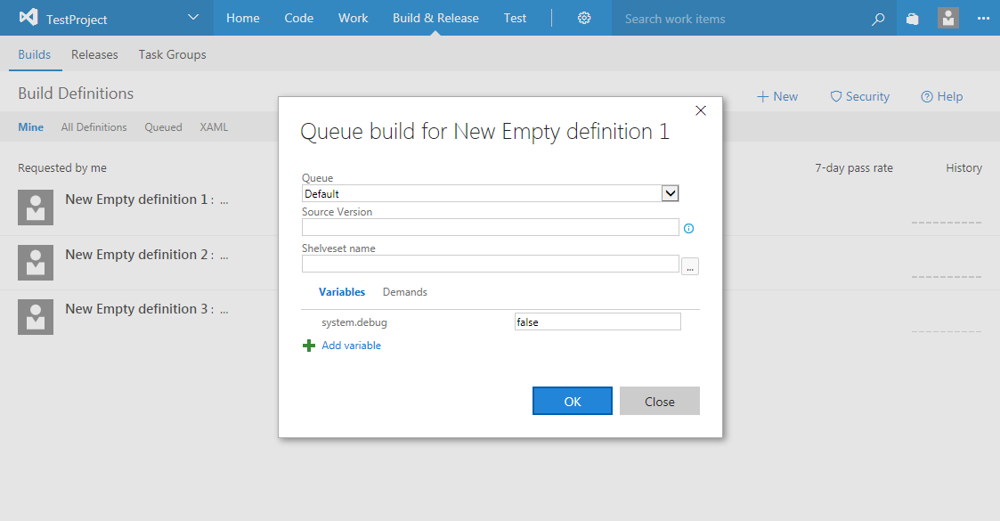 After you have configured a test project and a build definition, you can run your build. Your TestComplete tests will be executed during the build run.