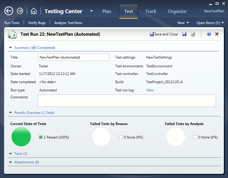 Important: You can run tests associated with test cases from Microsoft Test Manager only if you use XAML builds.