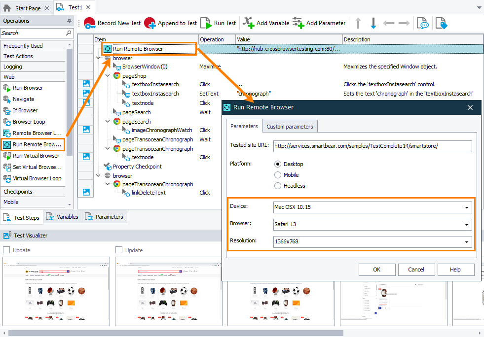To increase your test coverage, you may want to run you tests in as many web browsers and on as many platforms and devices as possible. To check how your tested web application or website works in Safari, you can create tests for it with TestComplete.
