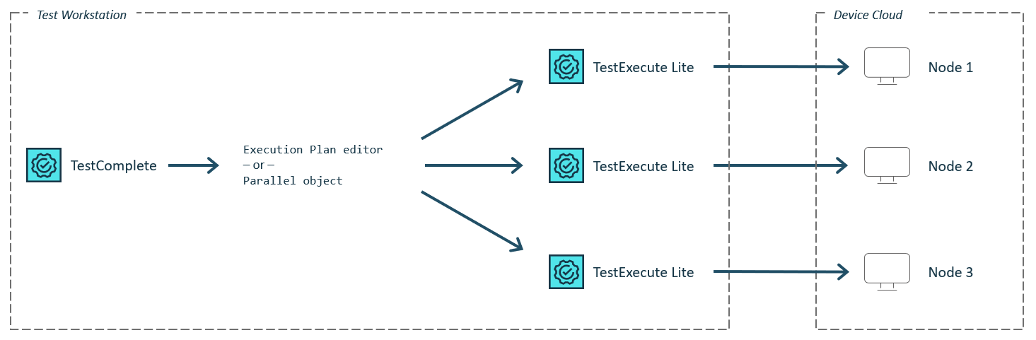 To run tests in parallel, you use the Device Cloud Parallel license and the TestExecute Lite tool. The tool comes as part of TestComplete and is installed automatically when you install the product. In addition, you get the standalone version of the tool as part of the Device Cloud Parallel license and can install it on computers where TestComplete is not installed.