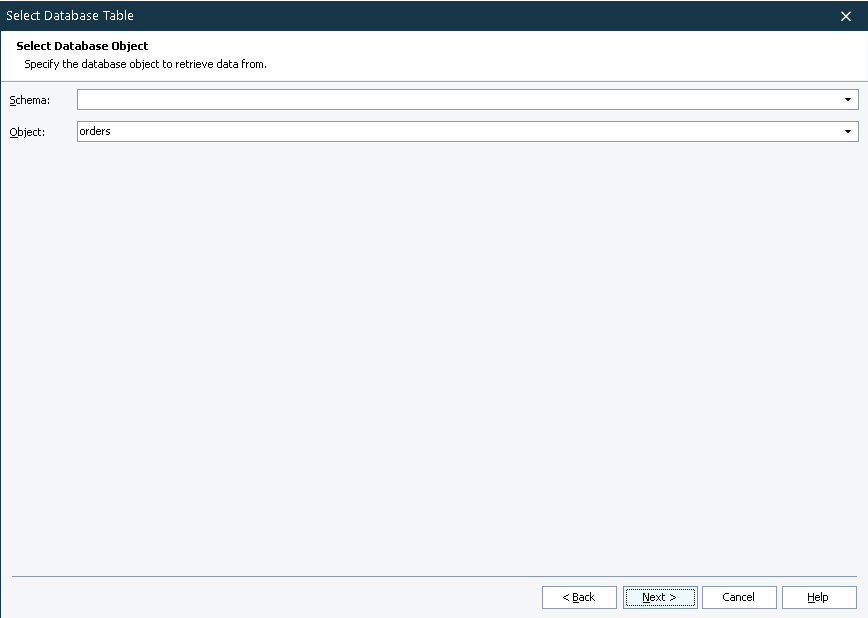 Select Database Table Wizard - Select Database Object Page