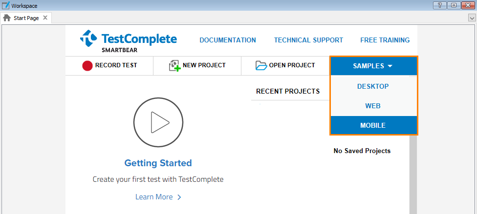 TestComplete samples (both built-in and additional) are located in the <Users>\Public\Public Documents\TestComplete 14 Samples folder.