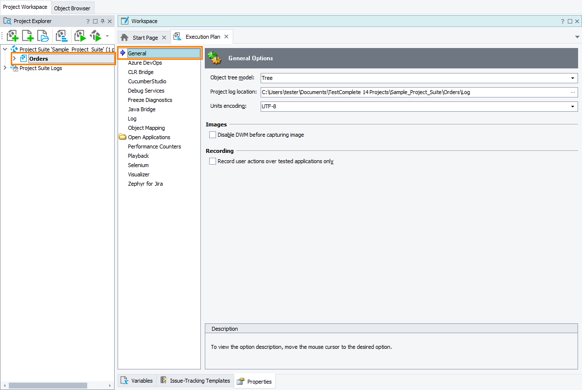 The default values of the general properties that will be used in new TestComplete projects are specified by the Default Project Properties - General Options dialog.