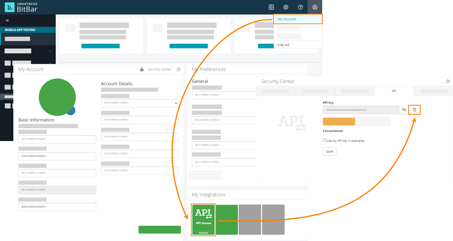 If the current TestComplete project does not have a BitBar API key specified, to connect to the BitBar device cloud dialog, enter the API key.