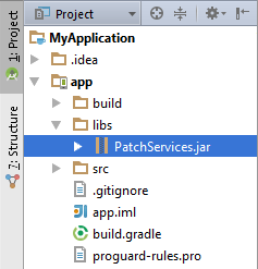 4. Add PatchServices.jar to the dependencies list in the app\build.gradle file of your project: