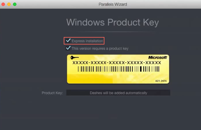 • In the installation wizard, select the Express Installation check box to install Parallels Tools (they improve integration between guest and host operating systems).