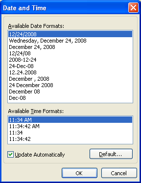 Print Preview - Date and Time Format Dialog