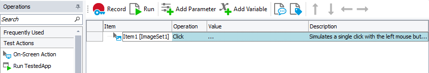 For all objects and screen areas added to the Image Repository, TestComplete provides a number of basic user actions you can simulate in your tests: