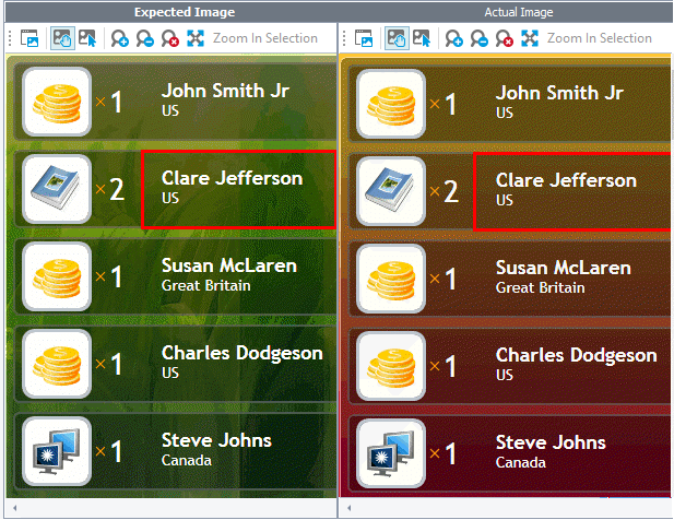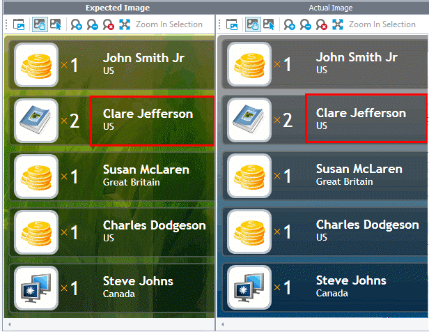 Image-Based Testing: TestComplete recognized the control, because the Pixel Tolerance parameter has an appropriate value.