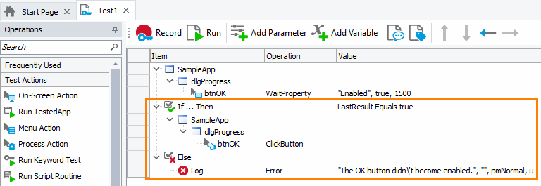 To perform conditional execution of operations (that is, to run a operation only if some specific condition is met), you use the If... Then operation. The Else operation is used to execute the operations when the If... Then’s condition evaluates to False.