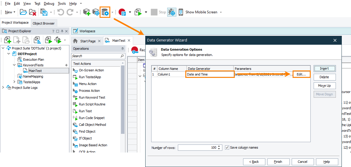 on the Tools toolbar or select Test > Generate Data from the main menu to call the Data Generator wizard. -