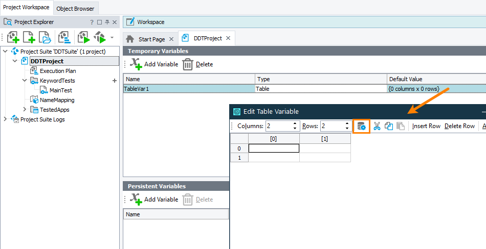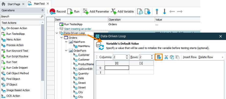 When adding a data-driven loop to a keyword test, select a table variable to store loop values.