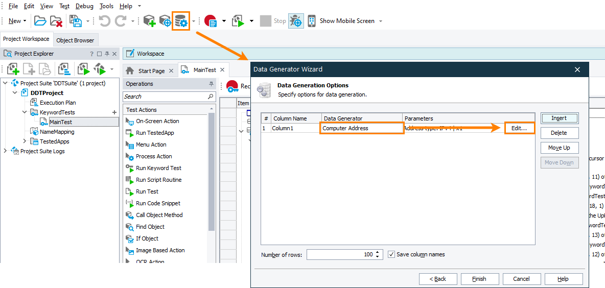on the Tools toolbar or select Test > Generate Data from the main menu to call the Data Generator wizard. -