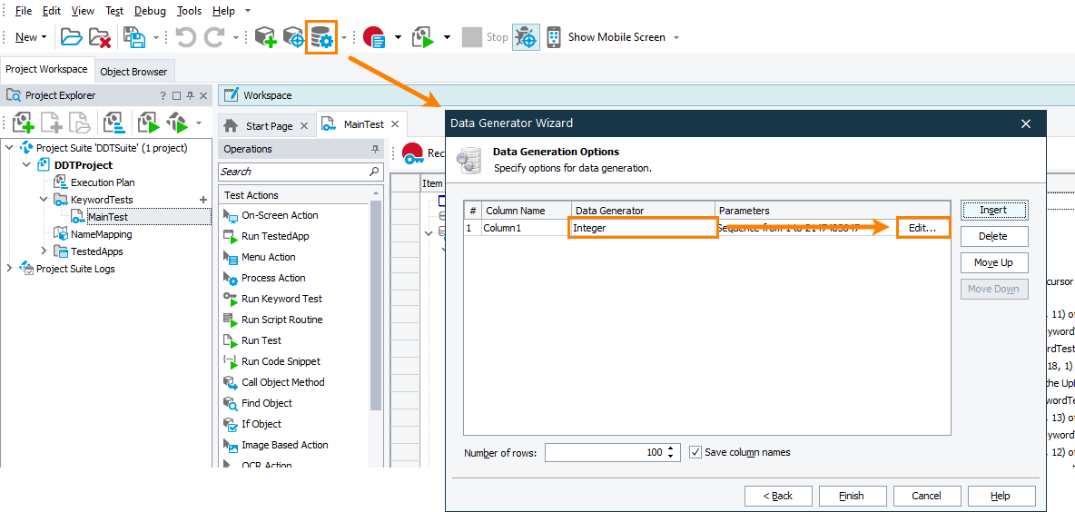 1. Click on the Tools toolbar or select Test > Generate Data from the main menu to call the Data Generator wizard.
