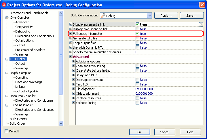 | Note: | C++Builder debug information is stored in .tds files. Make sure that the generated .tds files reside in the same folders as the appropriate modules of the application under test, otherwise the Debug Info Agent™ will not be able to access application internals. |