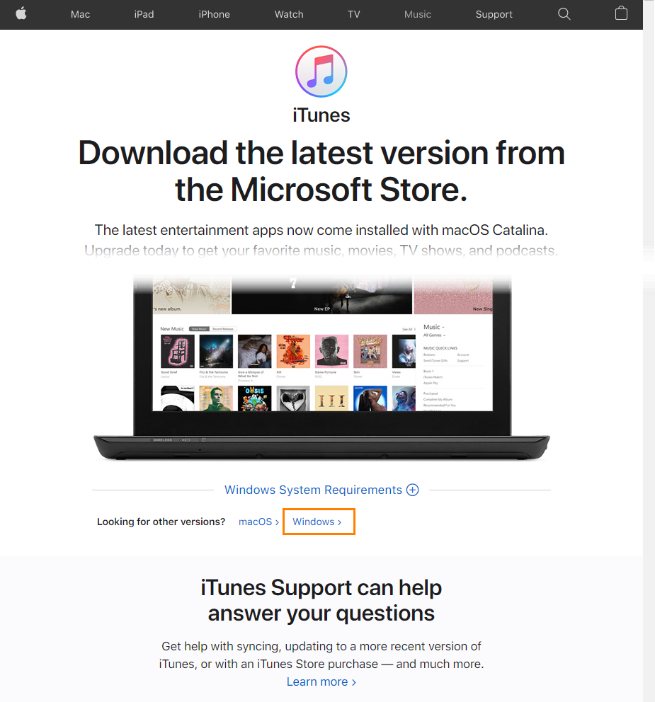 On the opened page, click Download iTunes for Windows now (64-bit) or Download here depending on the bitness of your operating system.