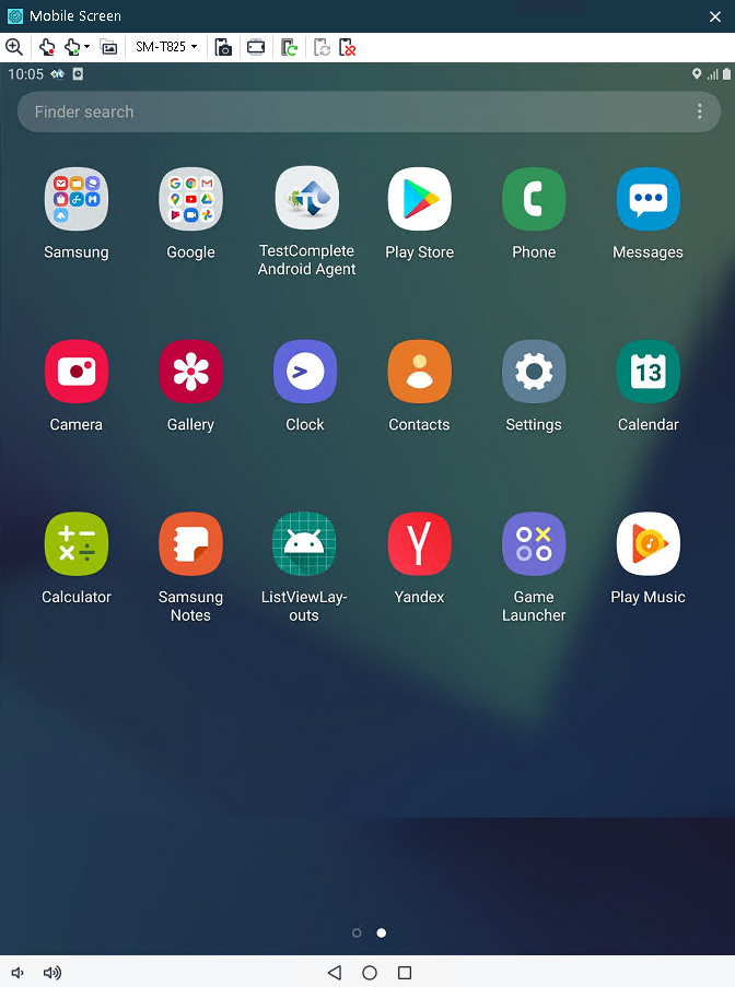 In the Mobile Screen window, you can view the screen of the connected mobile device and interact with the device. When you interact with the window, TestComplete sends all your actions to the tested application. It is used to record tests against mobile applications: TestComplete records only those actions that you perform in this window and ignores the actions that you perform on the device, emulator, or virtual machine.
