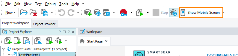 Click the Show Mobile Screen button on the Test Engine toolbar: